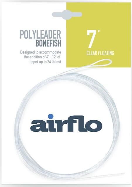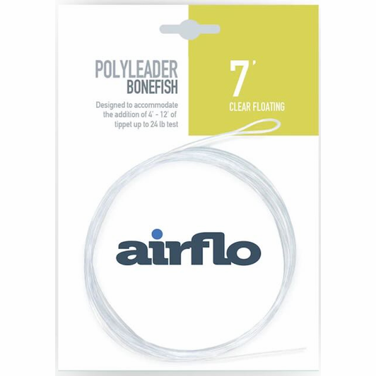 Airflo uses a hard polymer exterior, and a stiff mono core for strength and abrasion resistance for its Bonefish Polyleader. We like how the Airflo Bonefish Polyleader makes it easy to turn over the heaviest of bonefish flies.