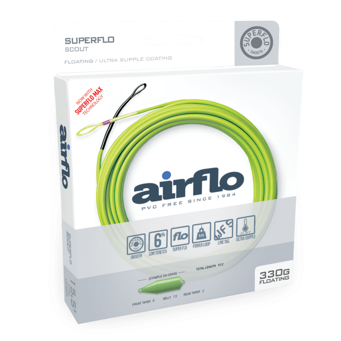 Airflo Superflo Skagit Scout is a fantastic Skagit head for single hand, switch or shorter full Spey rods. Perfect in tight quarters and turning your single hand rod into a casting machine. Orders over $75 ship free from the Caddis Fly Shop.