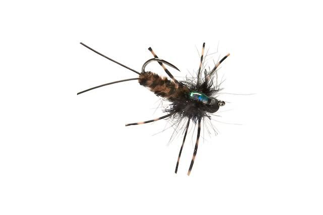 Bubba's In the Zone Stonefly Nymph is tied on a jig hook so the hook point rides up, preventing loss on the bottom. Bubba's has a large tungsten bead to help it get down and a spun CDC thorax that catches air bubbles and produces a lifelike imitation while drifting.