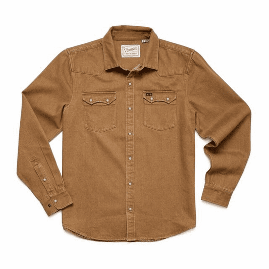 Howler Brothers Dust Up Denim Snapshirt is a rugged, heavyweight 100% cotton denim topper with a versatile style. Ideal for hard working fisher folks and those that prefer blue collar style. Shipped Free from Caddis Fly Shop.