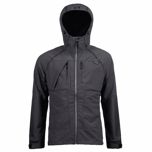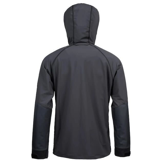 The stretchy soft shell fabric moves with you casting, hiking or just heading out for daily errands. The storm hood allows for full wind and rain protection, 4 functional pockets ( 2 small chest and 2 larger side) allow for ample carrying capacity.