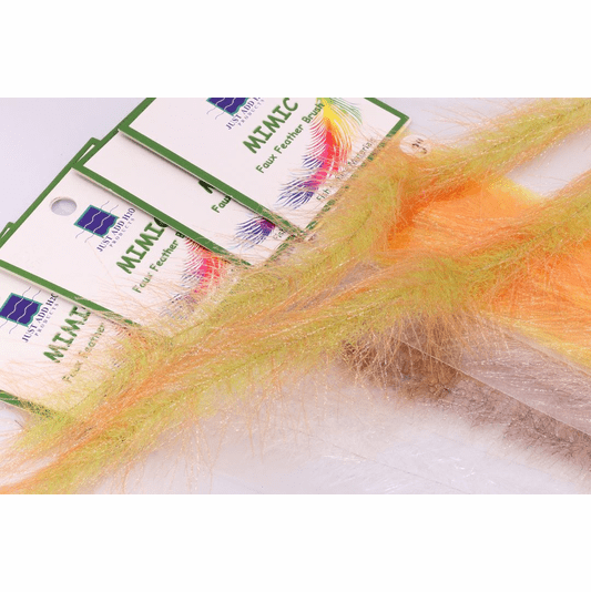 Mimic Faux Feather Brush is a perfect synthetic replacement for hen saddles on articulated flies. We love it for collars on steelhead or salmon flies tied on tubes and shanks. We are sure you will find some more use for this handy material!