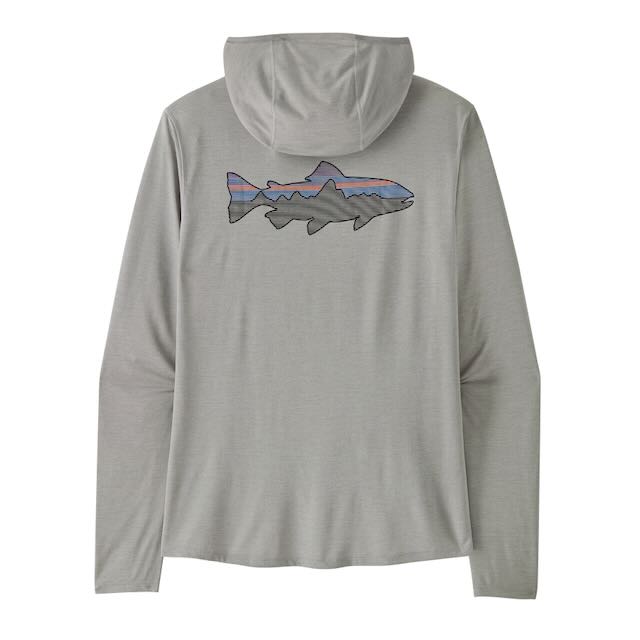 The Patagonia Capilene Cool Sun Hoody protects you from the sun with a 40+ UPF rating. The great looking Fitz Roy Trout Cap Cool Sun Hoody adds moisture wicking, quick drying and single knit construction.