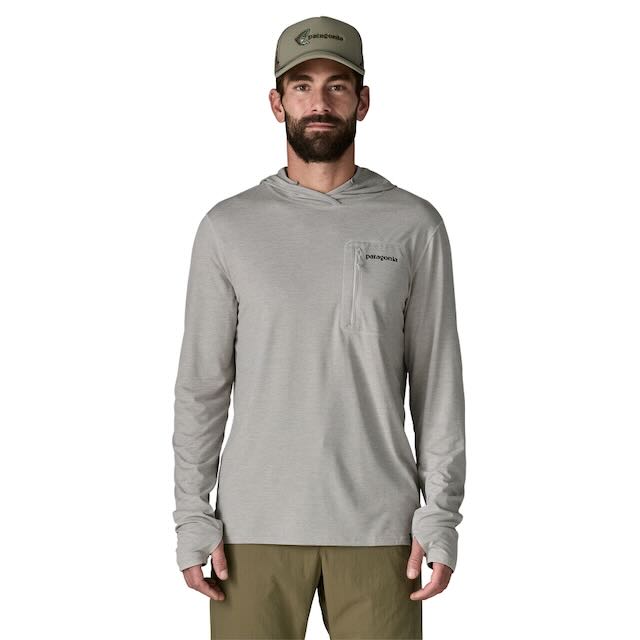 The Capilene Cool Sun Hoody Fitz Roy Trout has regular fit and is made with 100% recycled polyester. The Cap Cool Sun Hoody has thumb holes for sun protection, a generous hood with button closure and one vertical-zip chest pocket with a corrosion resistant zipper. This Patagonia Sun Hoody is built to last, keep its color and perform better than most hoody's on the market.