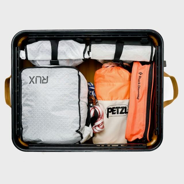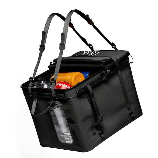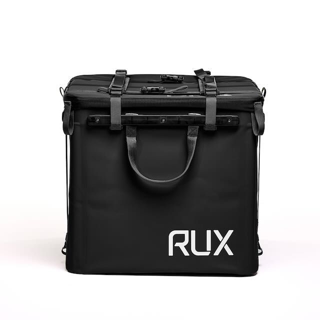 The Rux 70L Gear Box packs like a solid box. It carries like a tote or backpack and collapses to save space when empty. Rux 70L Gear Boxes are waterproof, weatherproof but not submersible.