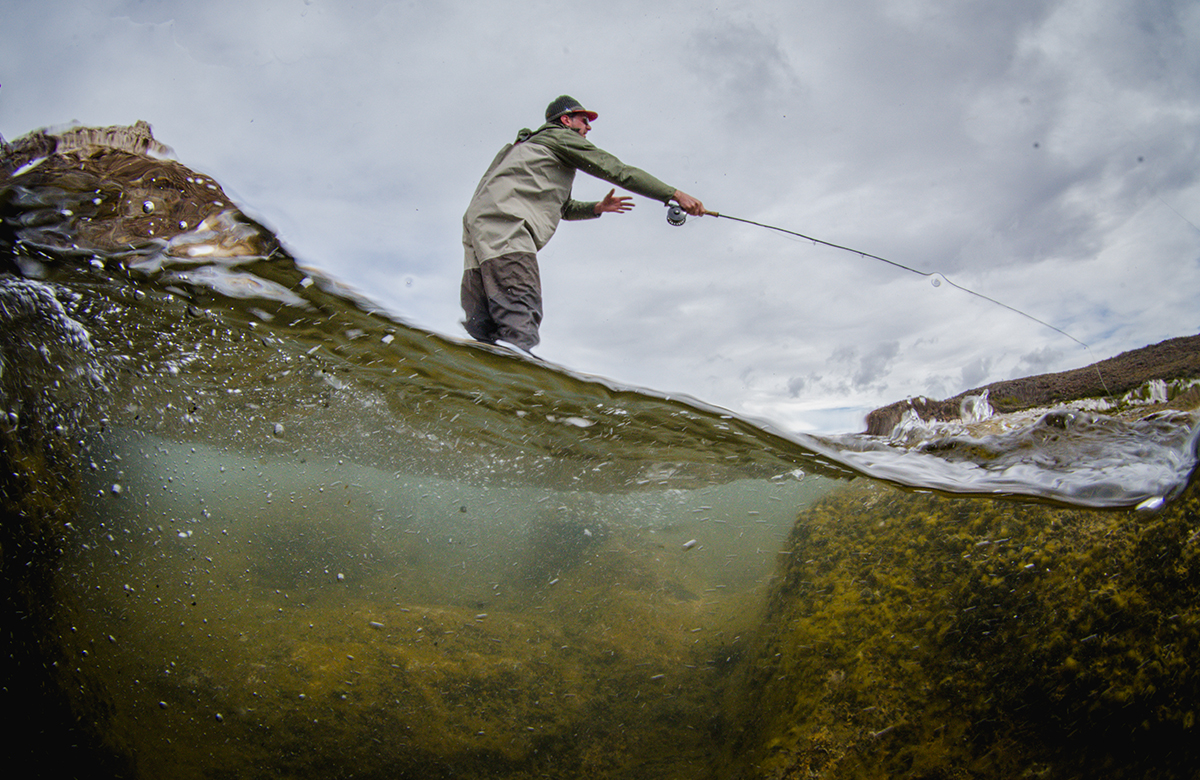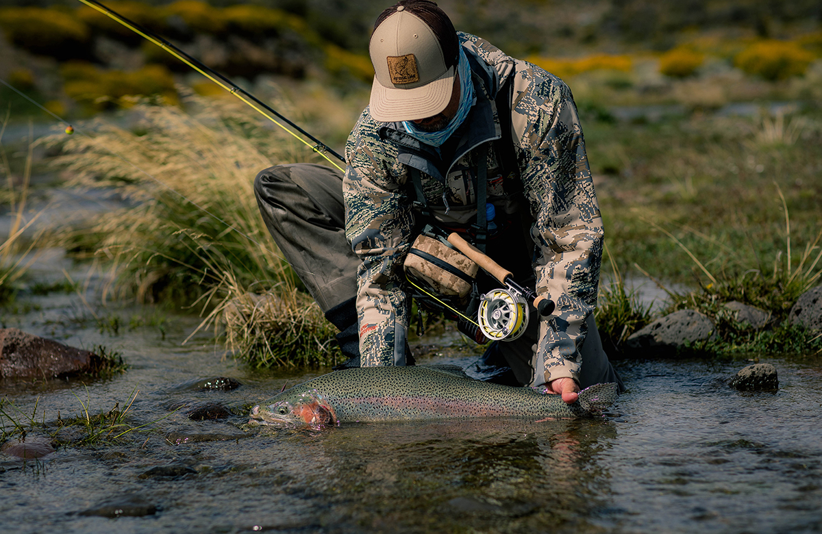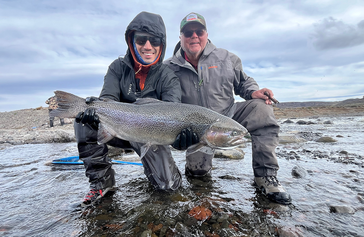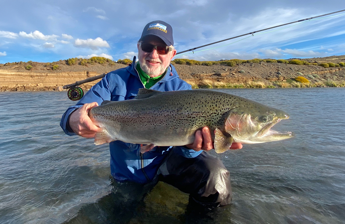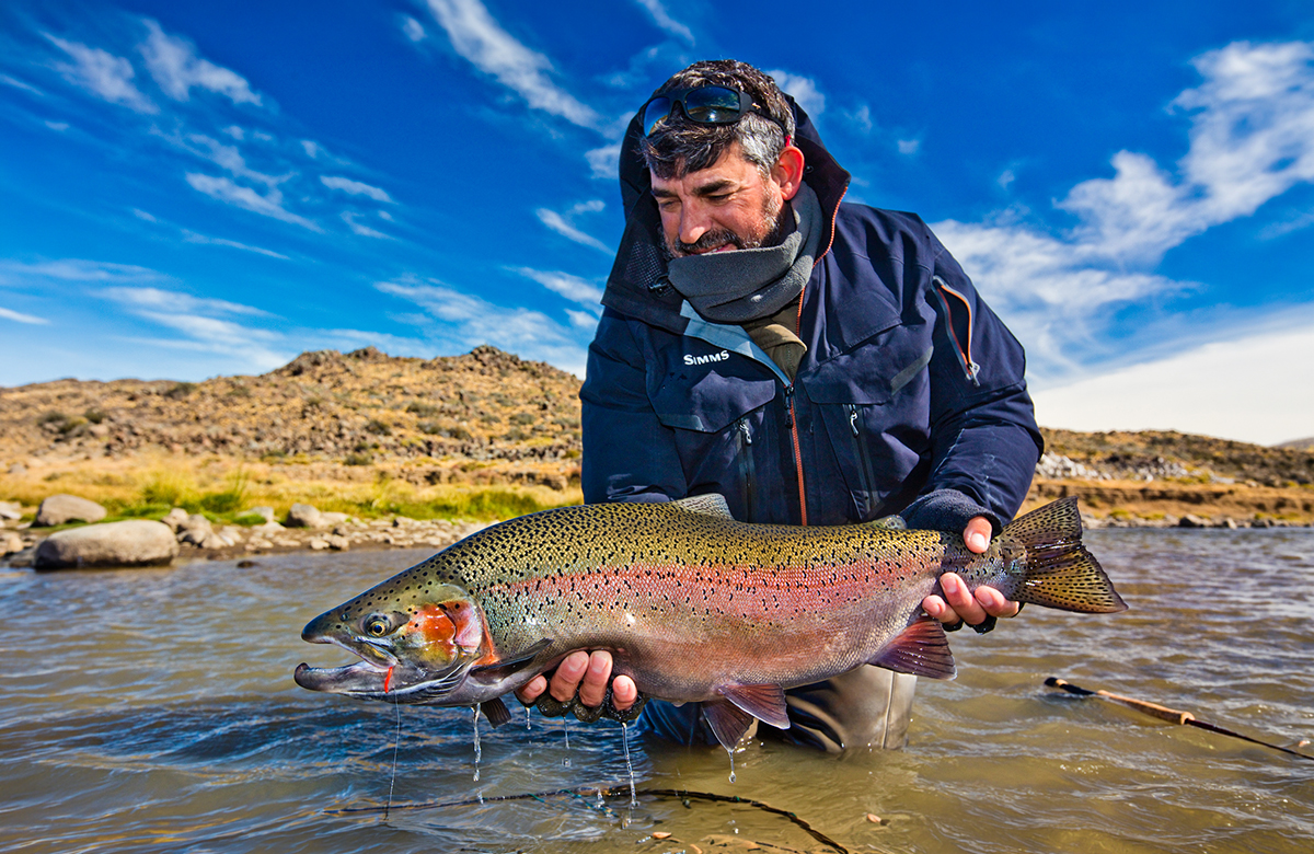 Relaxing in the comfort of the Jurassic Lake Lodge, visiting anglers look out upon a spectacular panoramic view of where the Barrancoso River joins Strobel Lake. The waters in this sheltered bay and the lower Barrancoso are easily among the greatest trophy rainbow trout fisheries in the world and they are only a short walk from the Lodge’s front steps. On any day of the season, a guest sitting in the Lodge’s comfortable front room could watch another visiting angler catch the biggest rainbow trout of their life.