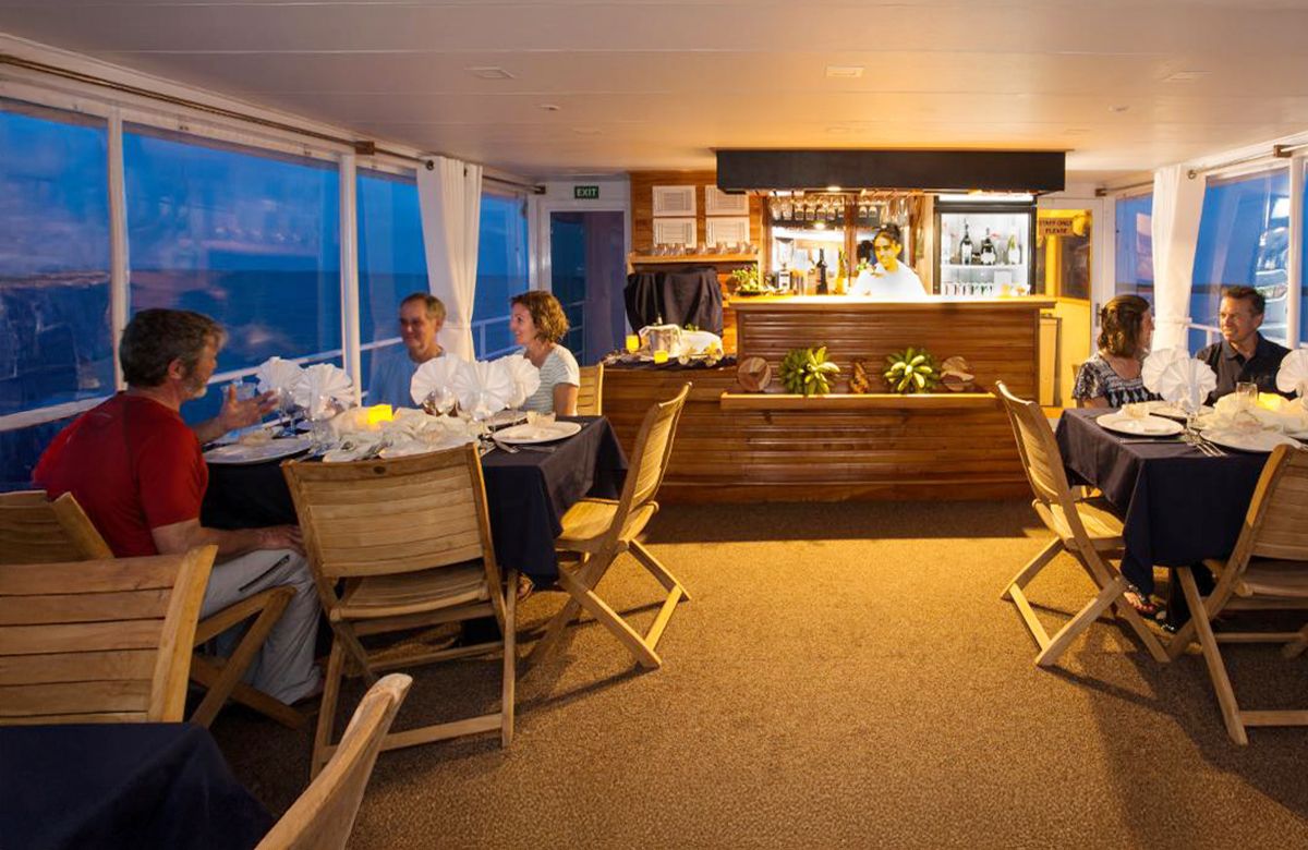 Comfortable lodge or liveaboard yachts with private cabins, A/C, and chef-prepared meals